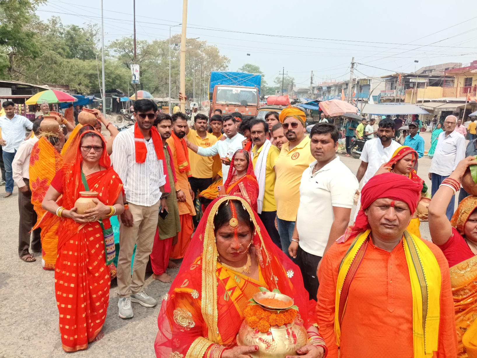 5 दिवसीय हनुमत महायज्ञ को ले 1100 कलश के साथ निकली यात्रा, जयकारे से गूंजा बालीडीह